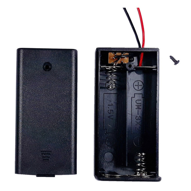 جاباتری 2 تایی کلید دار دارای درپوش قابل استفاده برای باتری های قلمی AA دارای 2 سیم خروجی به طول 15 سانتیمتر