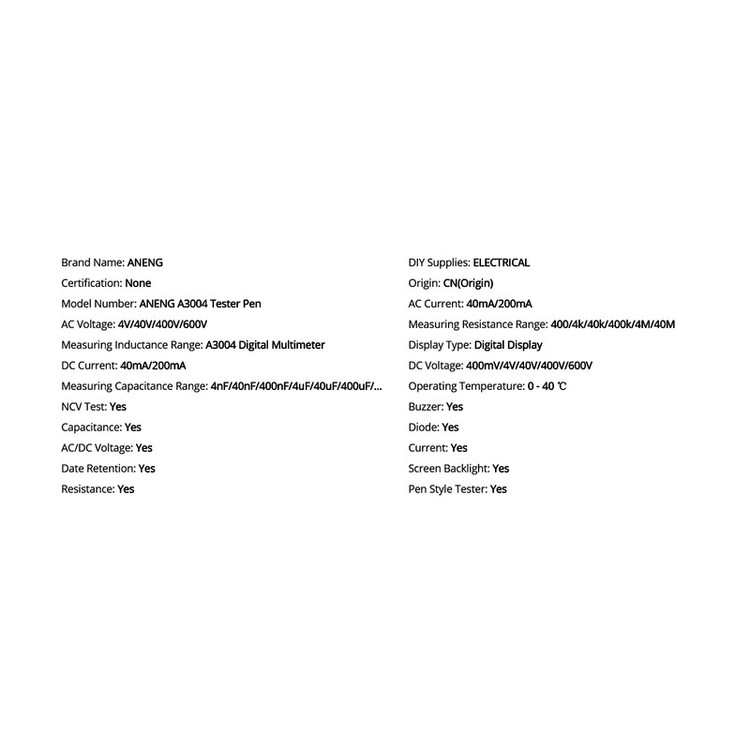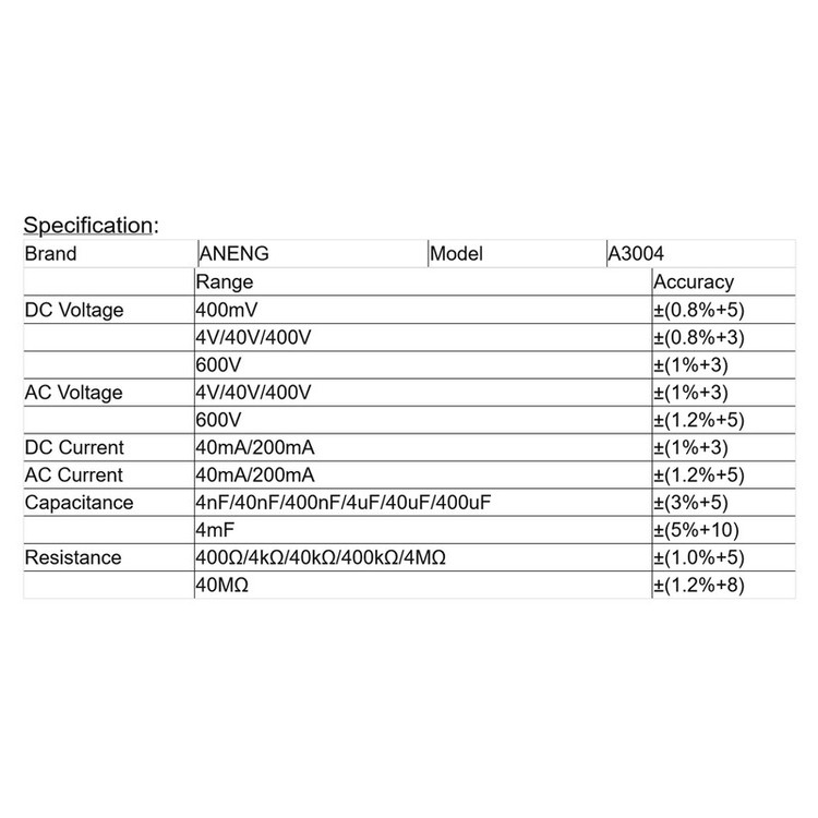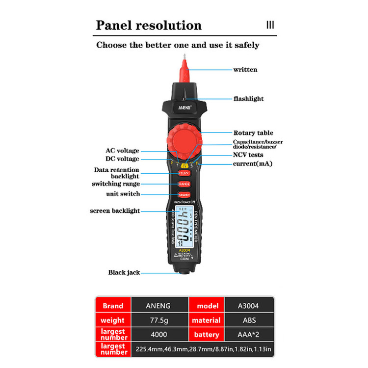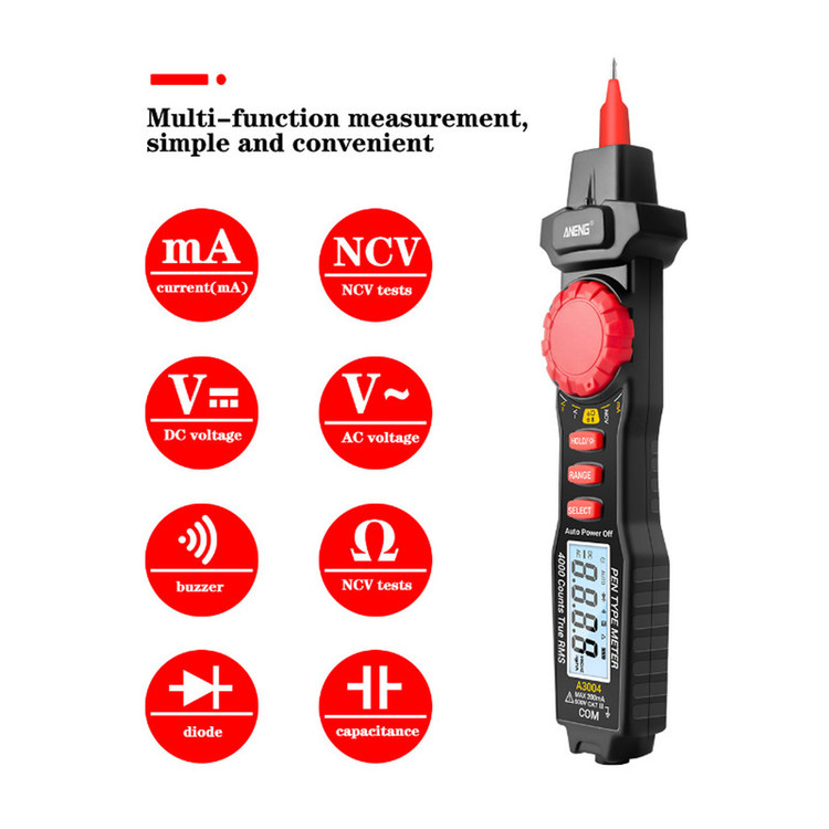 مولتی متر قلمی ANENG مدل A3004 ( بدون باتری ) پراپ دفترچه راهنما جعبه