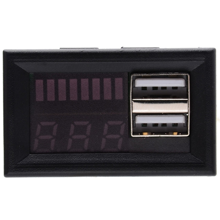 این نمایشگر روپنلی سطح شارژ باتری های اسیدی 12 ولتی دارای 2 خروجی USB با ولتاژ 5 ولت و جریان 1 آمپر میباشد. این ماژول بر اساس سطح ولتاژ و میزان شارژ باتری سطح شارژ باتری را نمایش میدهد. جهت سنجش میزان شارژ باتری 12V اسیدی کاربرد دارد. ماژول نمایشگر باتری با قاب دارای سگمنت با طرح باتری است و از این رو نمایش سطح شارژ را به صورت گرافیکی میتوان دید. علاوه بر این بر روی این ماژول دو عدد خروجی USB نیز وجود دارد که هر کدام امکان خروجی ولتاژ 5 ولت 1 آمپر را دارا می باشد. از این ماژول برای طراحی و ساخت انواع پاور بانک ها می توان استفاده نمود. از مشخصات دیگر آن میتوان به مناسب بودن برای انواع باتری های اسیدی -ابعاد جهت نصب : 45x26x18 میلی متر-جریان کاری ماژول : 5 الی 25 میلی آمپر-خروجی USB : ولتاژ 5 ولت 1 آمپر ، دو پورت USB-وضوح نمایش شارژ : 8 بخش شامل 10% 25% 40% 50% 60% 75% 90% 100%-دقت ولت متر: حدود 2% است-راندمان حدود 96 درصدی-دمای کار: 65 ~ 10- سانتی گراد-رطوبت کاری: 10-80 درصد اشاره کرد. مزیت های دیگر آن امکان نمایش ولتاژ و نشانگر ظرفیت باتری-امکان اتصال جهت شارژ تلفن همراه یا شارژ تجهیزات 5 ولت -مناسب برای انواع وسایل برق موبایل، ابزار دقیق و سایر تجهیزات صفحه نمایش ولتاژ باتری اضافی و USB -اندازه کوچک و وزن سبک.-عملکرد عالی در نمایش مقادیر و طرح گرافیکی کلی.-آسان برای خواندن و استفاده را میتوان برشمرد.