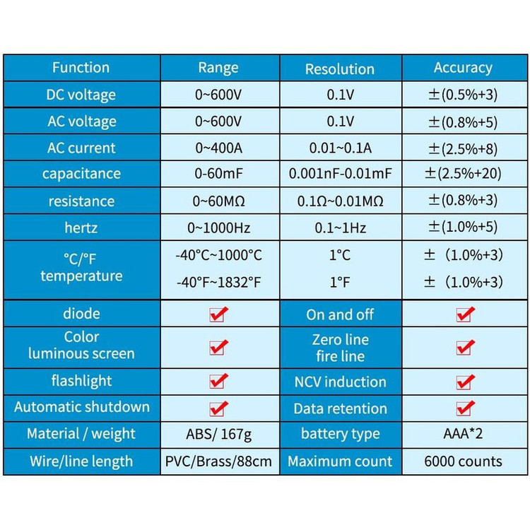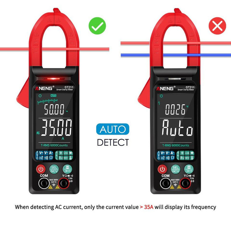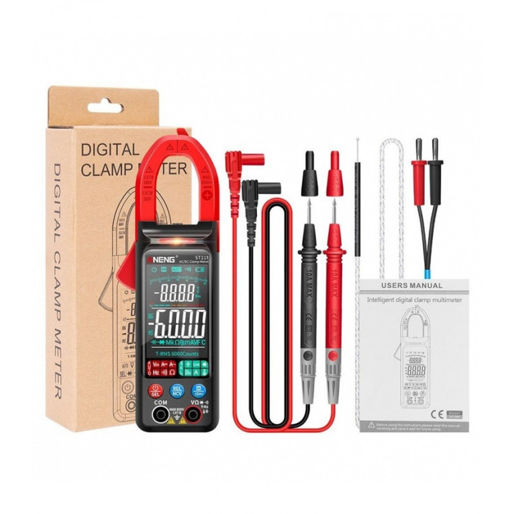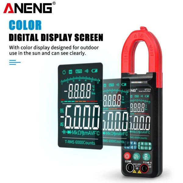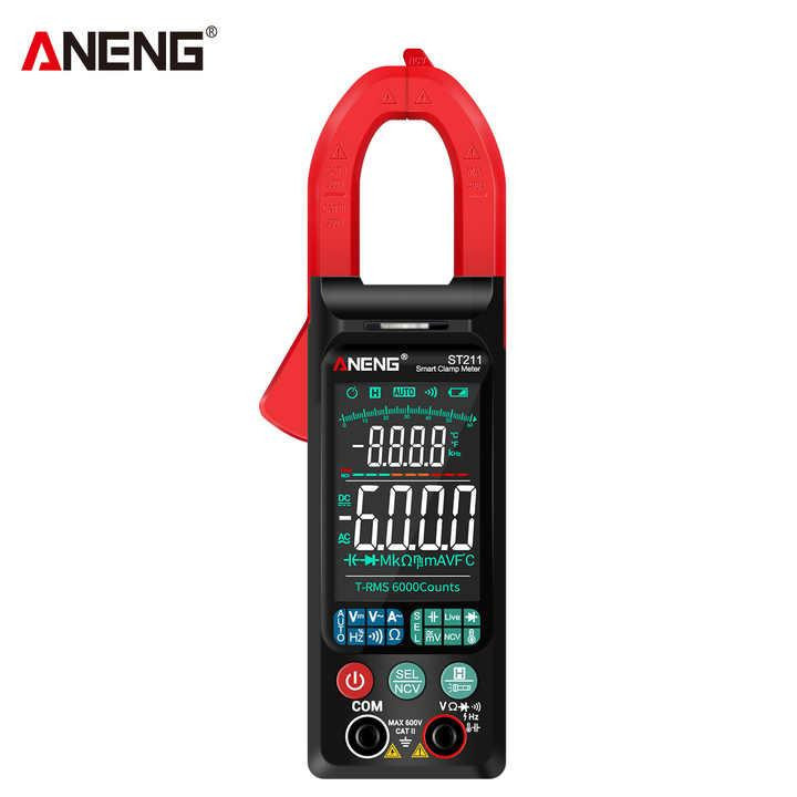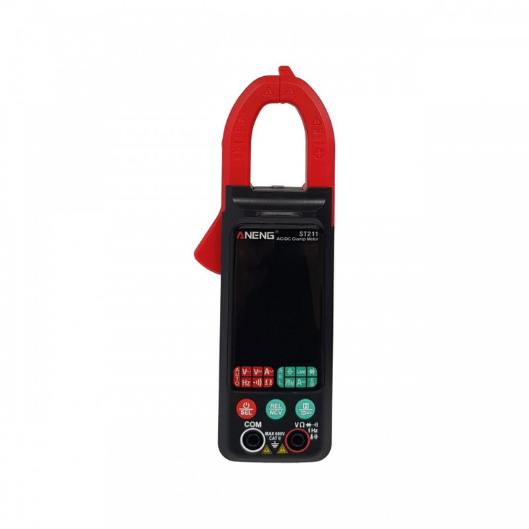 کلمپ مولتی متر مدل ST211 مارک ANENG یک آمپر متر AC با امکانات یک مولتی متر برای اندازه گیری پارامترهای الکتریکی می باشد.این کلمپ متر قابلیت سنجش جریان AC تا 400 آمپر رادارد. کلیه رنجها به صورت اتو رنج می باشند که امکان سهولت اندازه گیری را با دقت بالا فراهم میکند. از دیگر مشخصات میتوان به نوع صفحه نمایش: صفحه نمایش TFT با نورهای سبز و سفید -دارای نمایشگر بزرگ و بلک لایت بسیار زیبا - دارای دکمه هولدر نمایشگر -خاموش شدن اتوماتیک : 15 دقیقه -دارای به فازمتر القاییNCV-دارای چراغ قوه LED -دارای بازر و تست دیود-دارای دماسنج نسوز-دارای تست ظرفیت خازن-دارای سنجش مقدار فرکانس-دارای دما یا دماسنج دیجیتال اشاره کرد.