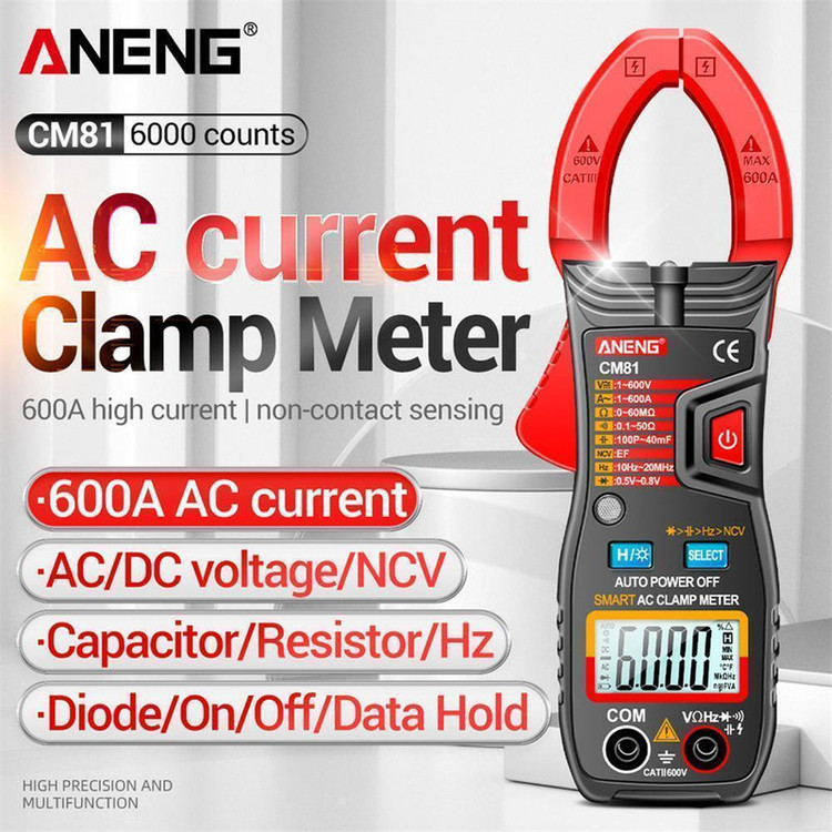 مولتی متر/ کلمپ متر CM81 مارک ANENG یک آمپرمتر AC/DC با امکانات یک مولتی متر برای اندازه گیری پارامترهای الکتریکی است. از دیگر مشخصات آن میتوان به محدوده ولتاژ AC: 1V-600V-محدوده ولتاژ DC: 1V-600V-محدوده جریان AC: 1A-600A-محدوده مقاومت: 0-60MΩ-محدوده ظرفیت: 100P-40mF-محدوده فرکانس: 10Hz-20MHz-اندازه: 185x65x32mm-منبع تغذیه: 2 عدد باتری قلمی-صفحه نمایش: صفحه نمایش HD LCD با نور پس زمینه-خاموش شدن خودکار پس از 15 دقیقه-دارای بازر اشاره کرد.