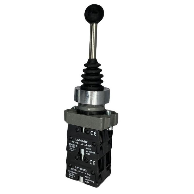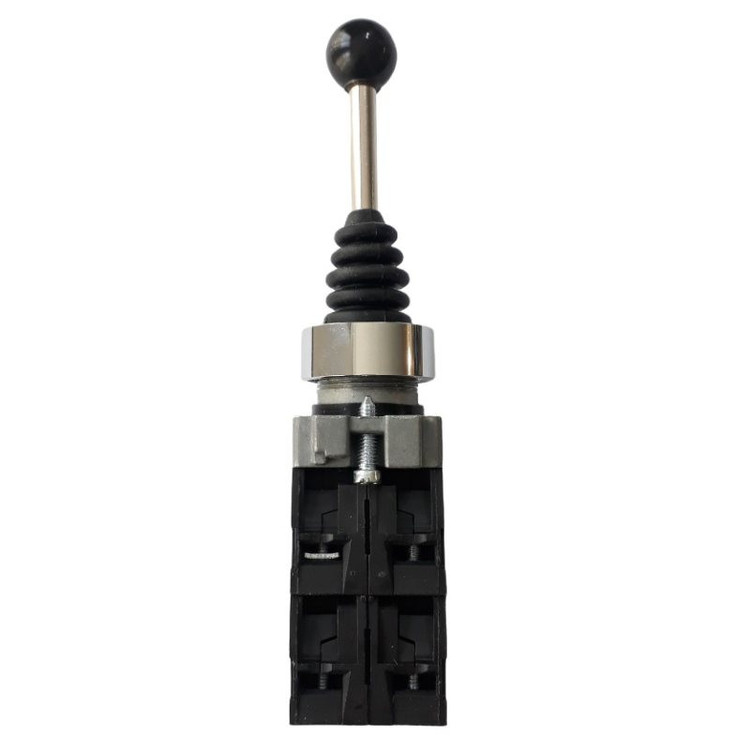 جوی استیک چهار حالته یکی انواع مختلف جوی استیک (joystick) های صنعتی است. جوی استیک صنعتی ابزاری است که دارای یک اهرم مکانیکی و کنتاکتهای الکتریکی است که با هر حرکت اهرم ، یک کنتاکت عمل و فرمانی را به سیستم اعمال میکند. بر حسب نوع جوی استیک ، اهرم قادر است از یک تا چهار جهت به صورت رفت و برگشتی حرکت کند و دستگاههایی چون جرثقیل ، ربات و … را هدایت کند. استفاده از جوی استیکها امروزه در پنلهای کنترل و تجهیزات اتوماسیون صنعتی جای خود را باز کردهاند و جایگزین مناسبی برای شستیها به حساب میآیند چرا که دارای چنین مزایایی میباشند: اشغال فضای کمتر بدلیل اجرای چند فرمان با حرکت مکانیکی اهرم در جهات مختلف نصب و سیمبندی سریع و آسانتر نسبت به شستیها