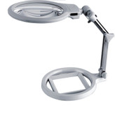 ذره بین پایه دار و چراغدار با لنز دوبل بزرگ میباشد. مدل MG3B-1A با لنز اصلی با قطر دایره 130 میلیمتر و زوم 2 برابر و لنز کوچک با قطر دایره 26 میلیمتری و با زوم 6 برابر می باشد. این ذره بین دارای 2 لامپ ال ای دی و پایه مدرج و با 3 باطری نیم قلمی کار میکند. این محصول به خاطر مجهز بودن به چراغ LED مناسب برای انجام کارهای الکترونیکی یا تحقیق و بررسی و کارهای ریز و تعمیرات ایده آل می باشد. وجود بازویی تاشو و متحرک این امکان را به کاربر می دهد که پس از تنظیم لنز در فاصله موردنظر با دست های آزاد و تسلط کامل به انجام کار موردنظر خود بپردازد. ذره بین بزرگ به همراه مینی ذره بین با زوم مناسب که انجام دقیق ریزه کاری های برقی و هنری را میسر می کند. این محصول ساخت کشور چین می باشد.