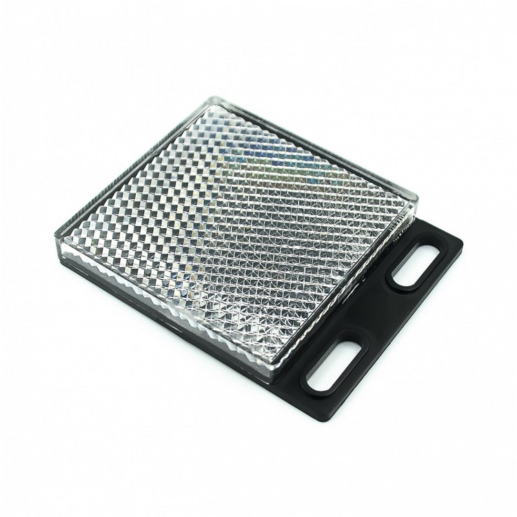 رفلکتور (reflector) یا بازتابنده ها ، نور تابیده شده به سطح خود را ساطع و نور را منعکس می کنند تا به سنسورهای فوتوالکتریک کمک کنند فاصله، حضور یا عدم وجود اشیاء را تشخیص دهند در واقع حسگرهای فوتوالکتریک از نور برای شناسایی اشیا استفاده می کنند و کار این نوع رفلکتورها نیز با بازتاباندن نور مادون قرمز به سنسور می باشد. ضمنا ابعاد سطح رفلکتور 50x50 میلی متر و ارتفاع آن 7.5 میلی متر میباشد.