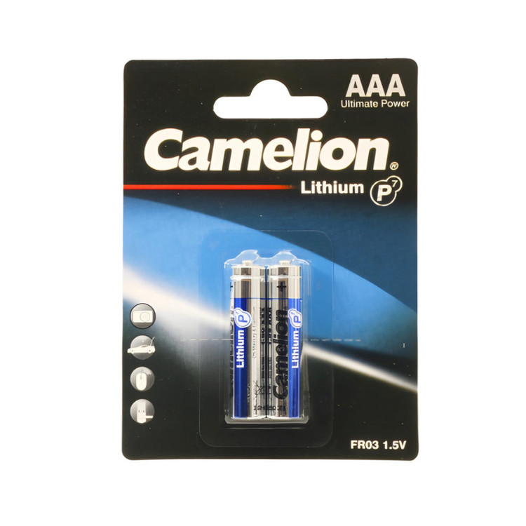 تکنولوژی باتری لیتیوم مارک باتری کملیون Camelion ولتاژ باتری 1.5 ولت سایز باتری AAA نیم قلمی حداکثر قطر خارجی 10.5 میلی متر حداکثر ارتفاع 44.5 میلی متر قابلیت شارژ ندارد بسته بندی ورق 2 تایی تاریخ بهترین استفاده قبل از 2031-10 ساخت کشور چین