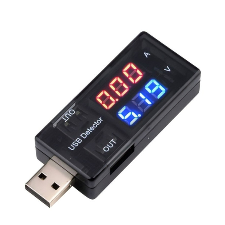 ماژول USB TESTER قابل اتصال به پورت USB بوده و با قابلیت نمایش ولتاژ و جریان خروجی درگاه USB برای محدوده ولتاژی 3.5 الی 9 ولت و حداکثر جریان 3 آمپر مناسب برای کاربردهای مختلف می باشد.این ماژول یک ورودی به همراه دو خروجی USB دارد در حالت کلی اگر هر دو USB خروجی به مصرف کننده های مجزا متصل باشد در نمایشگر مجموع آمپر مصرفی را نشان خواهد داد .