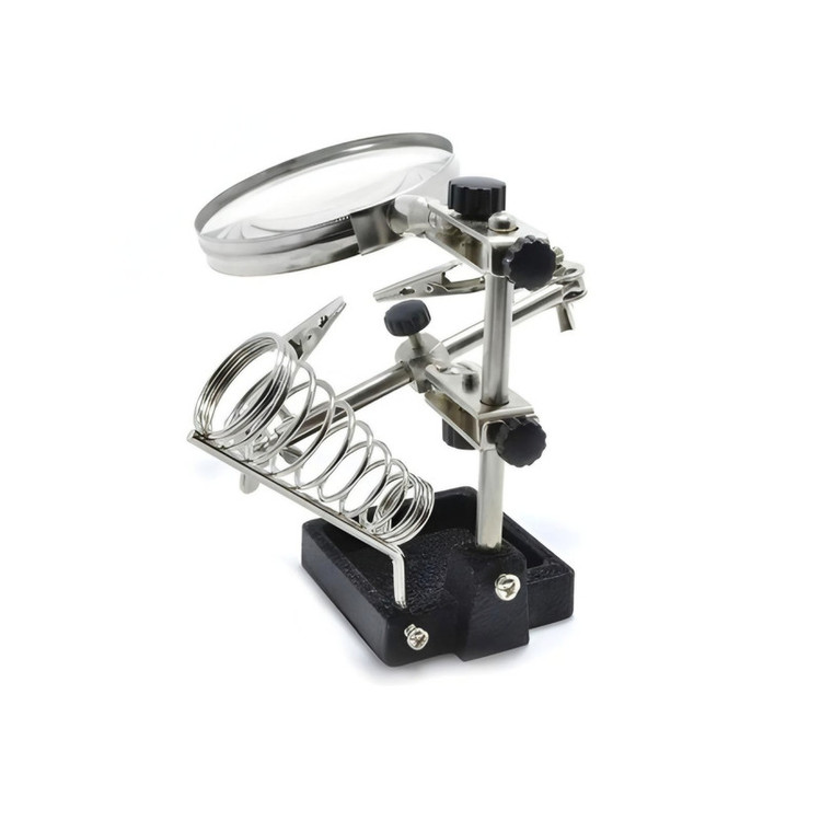 سایر توضیحات: مدل: JM508 کاربرد: مناسب برای مونتاژ قطعات الکترونیکی، لحیمکاری و تعمیرات ذره بین: بزرگنمایی مناسب جهت دید واضحتر پایه هویه: قابلیت نگهداری مطمئن هویه در هنگام کار بازوهای نگهدارنده: قابلیت تنظیم در چند زاویه مختلف برای نگهداشتن قطعات