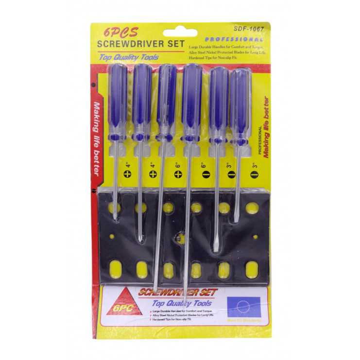 مجموعه 6 عددی سایزهای 3x75 ، 3x100 و 3x150 3 عدد پیچ گوشتی چهار سو 3 ، 4 و 6 اینچ 3 عدد پیچ گوشتی دو سو 3 ، 4 و 6 اینچ این مجموعه دارای طراحی ارگونومیک و کاربرپسند میباشد و قابل مغناطیسی شدن را نیز دارد.