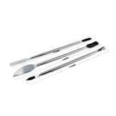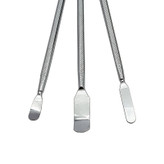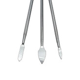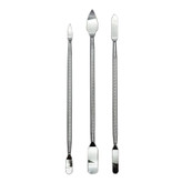 ست سه تایی قاب بازکن فلزی دو طرفه مناسب برای باز کردن قاب انواع گوشی موبایل و سایر محصولات قاب دار است. اکثر افراد برای باز کردن درب کنترل , گوشی موبایل و دیگر وسایل مشابه از ناخن , چاقو , کاتر و پیچ گوشتی استفاده می کنند که ممکن است در بعضی مواقع بدنه دستگاه را نیز خط و خش بیندازند. برای باز گردن انواع کنترل , گوشی موبایل و ... از ابزاری به نام اسپاتول می توان استفاده کرد. اسپاتول یا قاب باز کن ابزاری است که برای باز کردن انواع قاب استفاده می شود , مکانیزم اسپاتول به گونه است که در عین ظرافت در حدی که به شکاف های دستگاه ها نفوذ کند , دارای استحکام بوده و می توان به کمک آن قاب دستگاه ها را باز کرد. قاب باز کن میله دارای دو سر یکی با حالت تیز و یکی با حالت صاف بوده و دارای دسته ای مستحکم می باشد