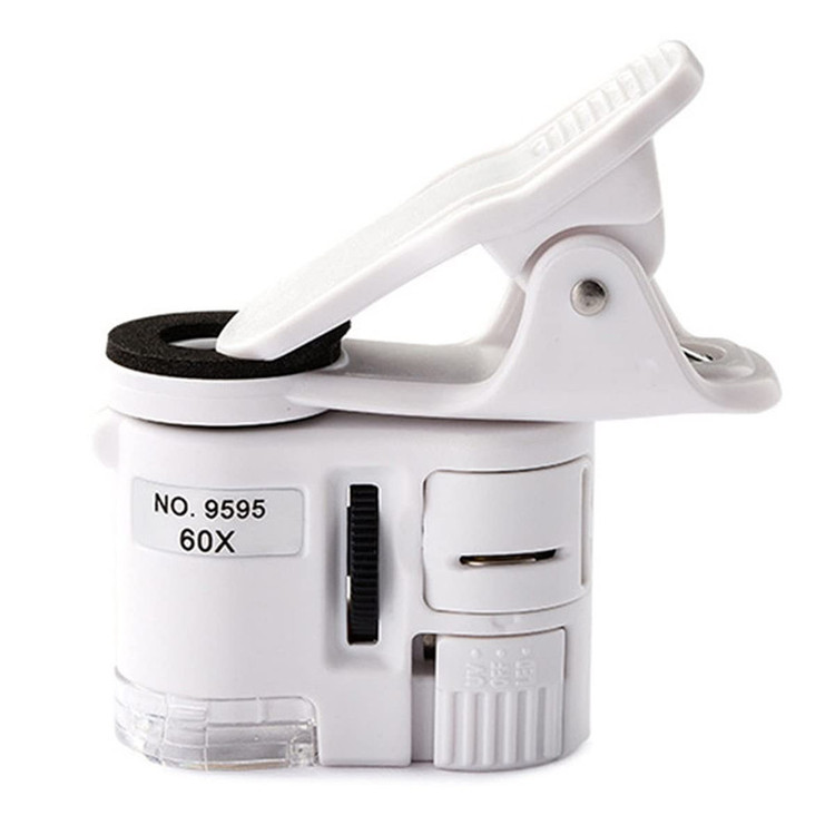 مشخصات: میکروسکوپ موبایل با قابلیت زوم 60 برابر مجهز به UV LED برای تشخیص اسکناس دارای نور سفید برای تشخیص بهتر کارکرد با 3 عدد باتری AG10 کاربرد تشخیص ارز و اسکناس ارزیابی جواهرات و وسایل آنتیک عیب یابی قابل استفاده در صنعت بررسی لبه های اجسام مهم
