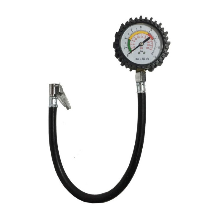 گیج باد همراه با شلنگ قابلیت سنجش باد لاستیک قابلیت سنجش فشار بر حسب بار و PSI قابیت اندازهگیری از 0 تا 16 بار یا 220 PSI طول شلنگ: 38 سانتیمتر دارای سری نگه دار فلزی