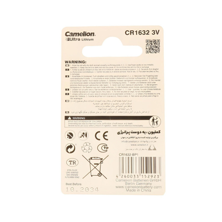 تکنولوژی باتری آلکالاین مارک باتری کملیون Camelion ولتاژ باتری 1.5 ولت سایز باتری AA قلمی حداکثر قطر خارجی 13.5 میلی متر حداکثر ارتفاع 50 میلی متر قابلیت شارژ ندارد بسته بندی ورق 2 تایی تاریخ بهترین استفاده قبل از 2033-12 ساخت کشور چین