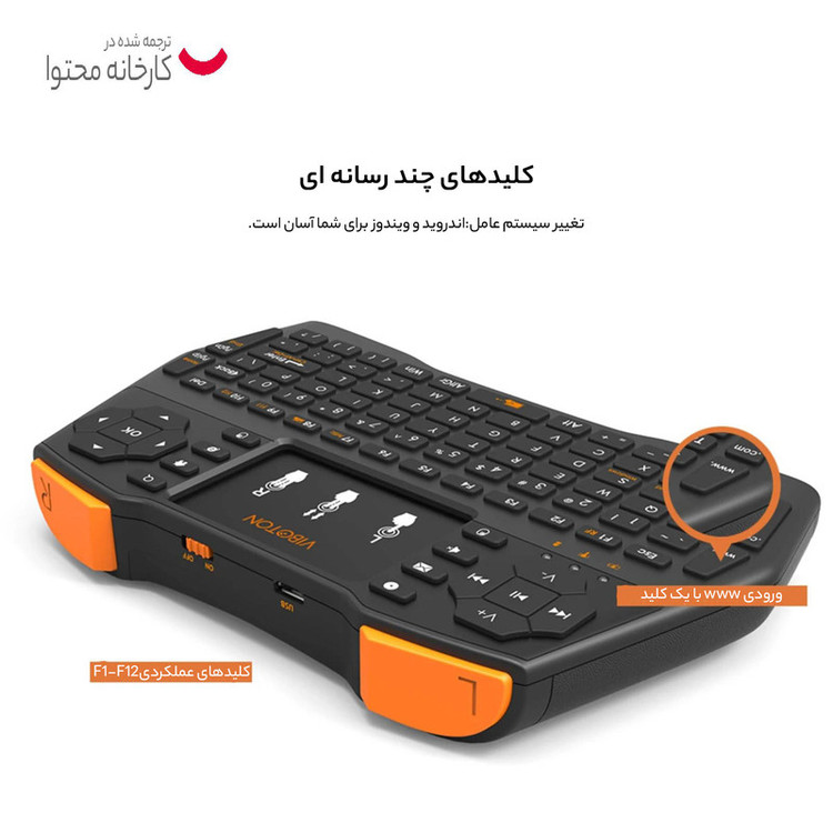 مینی کیبورد بی سیم حرفه ای قابلیت کار در سیستم عامل های Ubuntu,Debian,Andorid,Windows7,8,XP,Windows CE و...