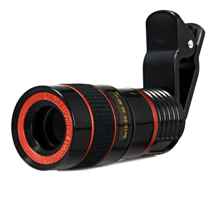 لنز کلیپسی گوشی موبایل 8X که تمام نیازهای تصویربرداری شما را برطرف مینماید .لنزها توسط گیره پلاستیکی (کلیپس) کوچکی که روی دوربین اصلی یا دوربین مکالمه گوشی نصب میشوند و تصاویری متفاوت با آنچه لنز معمولی گوشی ثبت میکند را ثبت مینماید . کارکرد لنزهای کلیپسی یا کلیپ لنزها بدین صورت است که میتوانند این نیاز را تا حدی برطرف نمایند . ایده کار بسیار ساده است از طریق یک گیره پلاستیکی میتوان لنزهای کوچکی را روی دوربین گوشی متصل کرد و عکسهایی متفاوت ازآنچه یک گوشی موبایل میتواند بگیرد گرفت . این لنزها بهصورت پیچی به گیره متصل شده و امکان اتصال دو لنز روی هم نیز وجود دارد . این لنز ها معمولا در بستههایی عرضه میشوند که شامل لنزهای 8 ایکس میباشند . که به ترتیب میتوانند تصاویری با میدان دید بیشتر، زوم از فاصله نزدیک آنچه از چشمی درب منازلتان میبینید به شما بدهند. این محصول یک دارای یک گیره پلاستیکی کوچک درپوشی برای محافظت از شیشه لنزاست علاوه بر گوشیهای موبایل، لنزهای کلیپسی قابلیت اتصال به تبلت ها را هم دارند