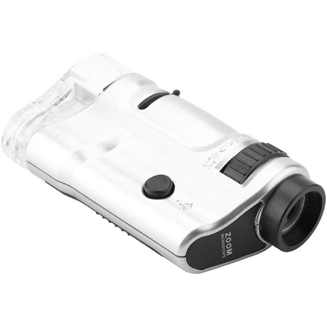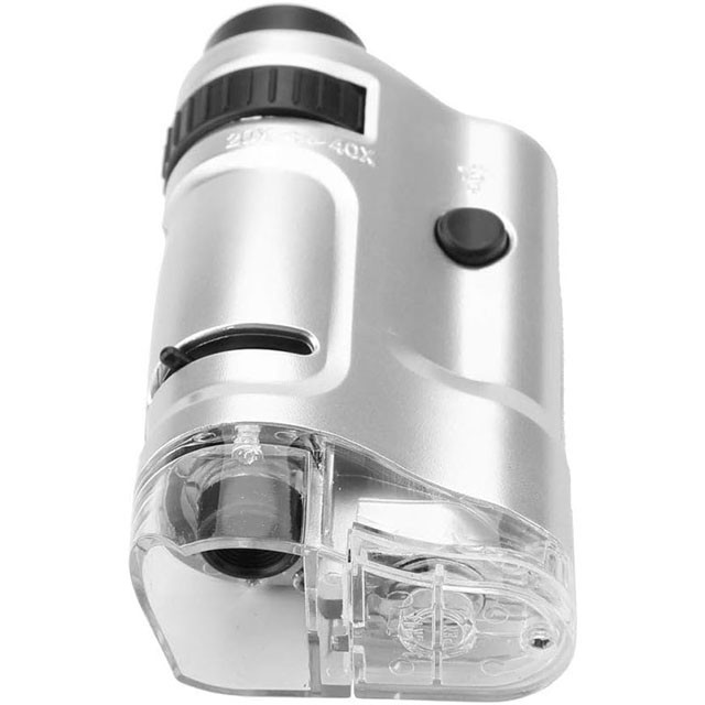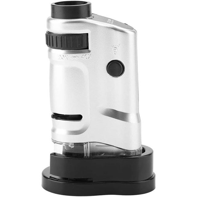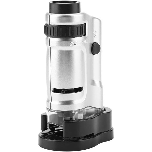 میکروسکوپ پایه دار کوچک 20X-40X مدل MG10081 ذره بینی کوچک و قابل حمل در جیب با زوم 20 تا 40 برابر چراغدار با پایه میباشد. میکروسکوپ دستی (جیبی) با نور LED مناسب کودکان 8 سال به بالا و بزرگسالان است. یک ابزار عالی آموزشی است تا با آن کودک شما قدم در مسیر دانش و تحقیق بگذارد و ارتباط خوبی را با طبیعت و جهان پیرامونش برقرار کند. این وسیله را میتوانید همراه با خود به پارک و مسافرت و هر جایی ببرید و بلافاصله و به سادگی جهان ریز و پنهان ذره بینی و میکروسکوپی را آشکار کنید. از تماشای بافت گیاهان، گلها، یا موجودات ذره بینی و میکروسکوپی در آب گرفته تا تماشای بافت لباس ، کاغذ، پول و خلاصه هر چیزی را میتوانید با آن تماشا کنید. وقتی کودکان جهان میکروسکوپی را با این وسیله بررسی میکنند علاوه بر اینکه لحظاتی لذت بخش خواهند داشت تواناییهای ذهنی و عملی آنها نیز افزایش خواهد یافت و علاقمند یادگیری و اکتشاف خواهند شد. در بزرگنمایی 20 تا 40 برابر ذرات ریزی مانند نمک یا شکر مانند جواهر بزرگ دیدنی میشوند و موجودات میکروسکوپی مانند مورچه غول پیکر به نظر خواهند رسید. میکروسکوپ دستی (جیبی) 40X با نور LED پنجرهای است که بر روی جهانی پنهان، شگفت و زیبا باز خواهد شد.