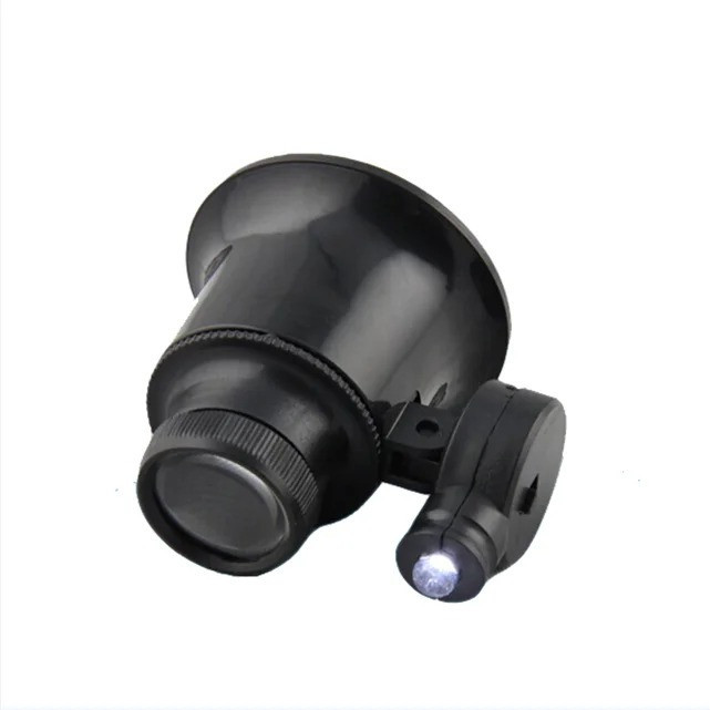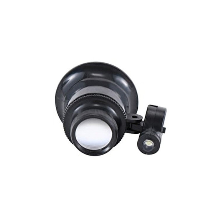 چراغدار از نوع LED سفید میزان بزرگنمایی : 20x نوع باتری چراغ : باتری سکه ای 3 ولت CR1620 تغذیه باتری با 2 عدد باتری CR1620 قطر عدسی 15 میلیمتر