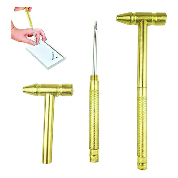 چکش طلایی چند کاره با پیچ گوشتی جنس فلزی ساخت چین قابل تبدیل به پیچ گوشتی دوسو و چهارسو کیفیت ساخت عالی 2 عدد پیچ گوشتی دوسو و 2 عدد پیچ گوشتی چهارسو