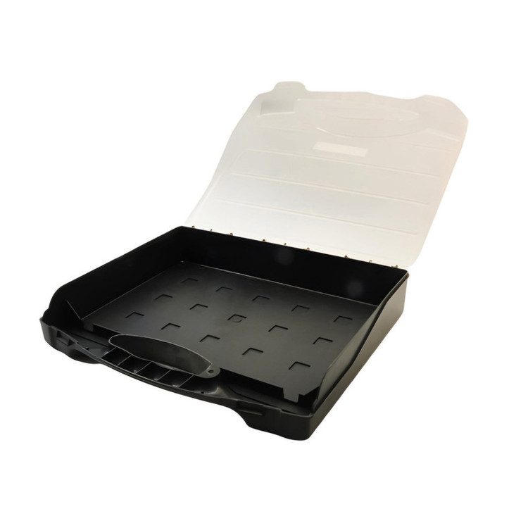 مدل: Tik-201 ابعاد: 30 × 25 × 5 سانتیمتر وزن: 335 گرم جنس بدنه: پلاستیک تعداد طبقات: 1 درب شفاف برای مشاهده محتویات مجهز به دستگیره برای حمل آسان