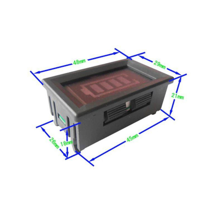 این ماژول بر اساس سطح ولتاژ و میزان شارژ باتری 12 ولت سطح شارژ باتری را نمایش میدهد. جهت سنجش میزان شارژ باتری 12V کاربرد دارد. ماژول نمایشگر باتری با قاب دارای سگمنت با طرح باتری است و از این رو نمایش سطح شارژ را به صورت گرافیکی میتوان دید.