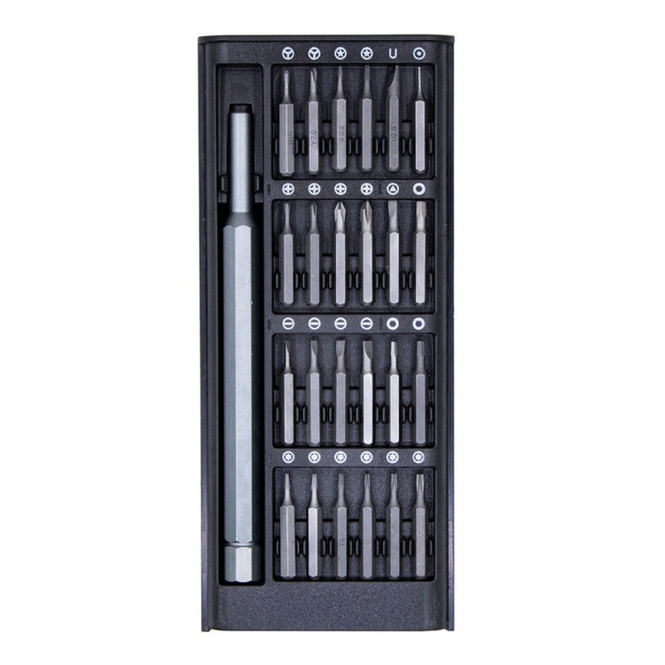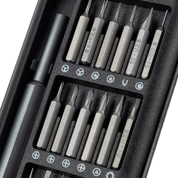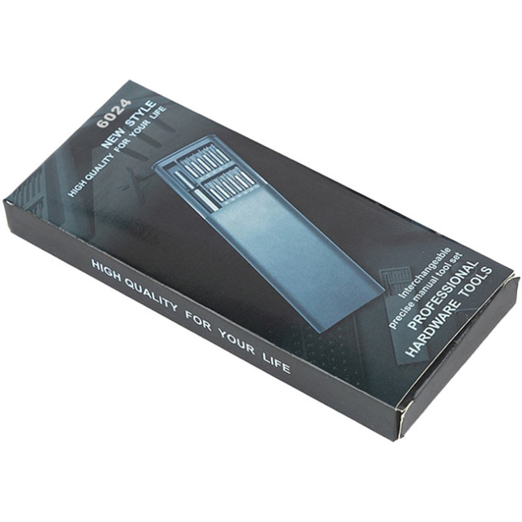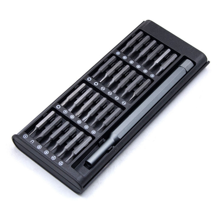 ست پیچ گوشتی 24 تکه شامل تعداد بسیاری از سری پیچ گوشتی متفاوت به همراه 1 دسته پیچ گوشتی می باشد. برای تعمیرکاران تعمیر موبایل بسیار مناسب بوده و با این ست دیگر نیازی به پیچ گوشتی های دیگر ندارند. این ست را می توانید برای موبایل همچنین برای لپ تاپ و تبلت و ساعت هوشمند استفاده نمایید. دارای قاب پلاستیکی مقاوم و همراه بوده و طراحی ارگونومیک و کاربرپسند دارد .محتویات آن 24 عدد سری مختلف پیچ گوشتی مدل دو سو، چهار سو، ستارهای، آلن، مثلثی، سهپر میباشد. 1 عدد نگهدارنده سری های پیچ گوشتی