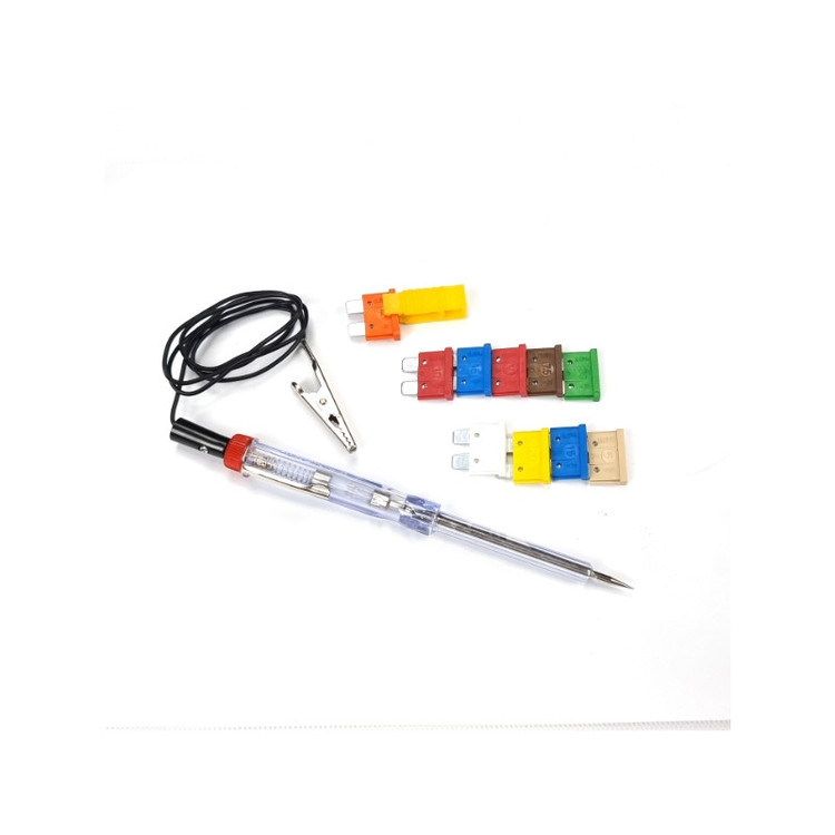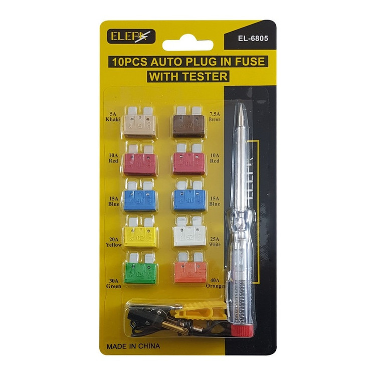 تستر فیوز خودرو یا لامپ تست، ابزاری است برای پیدا کردن فیوزهای سوخته، بدون نیاز به خارج نمودن آنها. تکنسینهای برق خودرو برای عیب یابی در اتصال مدارات خودرو از این وسیله کاربردی استفاده می کنند. از محتویات آن میتوان به 1 عدد پیچ گوشتی تستر-1 عدد سیم تست سوسماری-1عدد فیوز 5A/7.5A/20A/25A/30A/40A- دو عدد فیوز 10A/15A اشاره داشت.