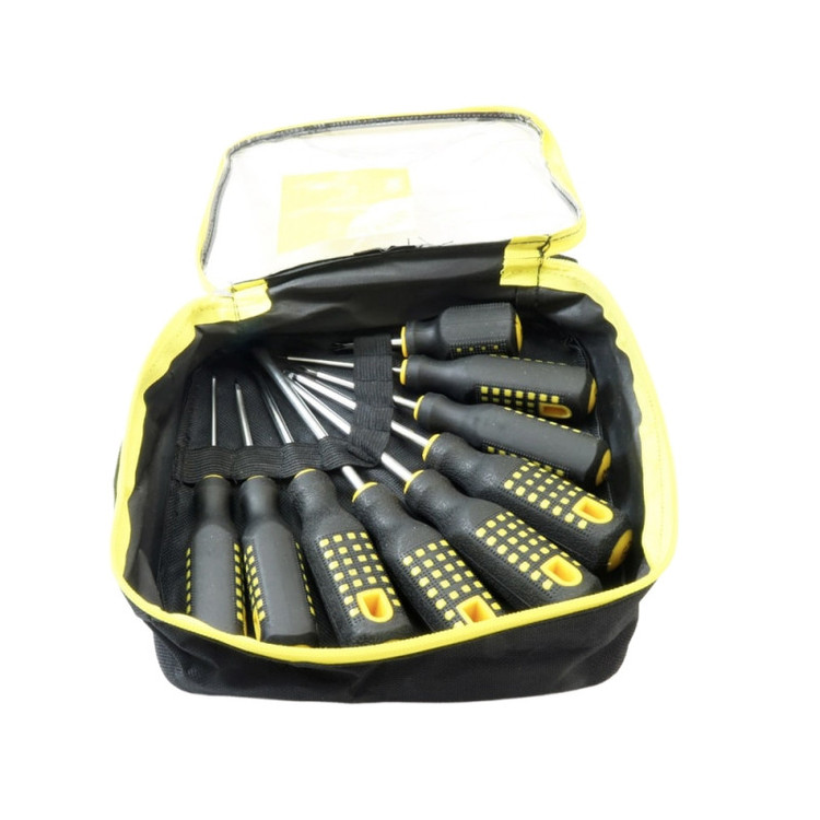 ست پیچگوشتی 9 تکه OK شامل ترکیبی از پیچگوشتیهای دوسو و چهارسو در اندازههای مختلف است که نیازهای عمومی و تخصصی در تعمیرات الکترونیکی، مکانیکی و خانگی را پوشش میدهد. طراحی ارگونومیک دستهها با روکش پلاستیکی ضدلغزش و آجدار باعث میشود تا کاربر در حین استفاده کنترل بهتری داشته باشد و خستگی دست کاهش یابد. میلههای فلزی این مجموعه از جنس کروم-وانادیوم هستند که مقاومت بالایی در برابر خوردگی، فشار و پیچش دارند. ترکیب اندازههای مختلف در این ست باعث شده تا برای طیف وسیعی از پیچها قابل استفاده باشد؛ از تعمیرات الکترونیکی ظریف گرفته تا باز و بسته کردن اتصالات بزرگتر در صنایع سبک و سنگین. بهعلاوه، این مجموعه در یک کیف برزنتی زیپدار و بادوام عرضه میشود که حمل و نگهداری آن را بسیار آسان میسازد. مشخصات تعداد ابزار: 9 عدد نوع سریها: چهارسو (PH) و دوسو (SL) چهارسو PH0 × 75mm چهارسو PH2 × 38mm چهارسو PH2 × 100mm چهارسو PH2 × 125mm چهارسو PH1 × 75mm دوسو SL3 × 75mm دوسو SL5 × 75mm دوسو SL6 × 100mm دوسو SL6 × 125mm جنس میله: فولاد کروم-وانادیوم جنس دسته: پلاستیک مقاوم با روکش ضدلغزش کیف حمل دارد از جنس برزنت مقاوم با زیپ می باشد.