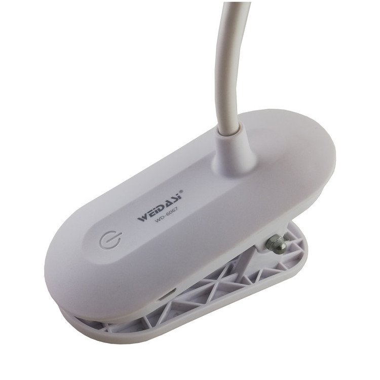 این محصول یکی از جدیدترین تولیدات کمپانی ویداسی (WEDASI) است. این چراغ مطالعه گیره دار بوده که می توان به هر جای ممکن مانند میز کار متصل کرد. بدنه ی آن قابل انعطاف بوده و می توان به راحتی آن را خم کرد و در مکان مورد نظر قرار داد. لامپ آن از نوع SMD می باشد (16 عدد SMD) و دارای نوردهی مطلوب، مصرف پایین و عمر بالا می باشد. یک باطری قابل شاژ در داخل پایه چراغ قرار دارد که شما را از برق مستقیم شهر بی نیاز می کند. و در مواقعی که برق قطع است شما می توانید به راحتی به مطالعه و انجام کارهای خود ادامه دهید. این چراغ مطالعه دارای یک دکمه لمسی می باشد که توسط آن می توان نور لامپ را به میزان دلخواه تنظیم کرد به این صورت که با لمس این دکمه، چراغ مطالعه با نور زرد در حالت ضعیف روشن می شود و با لمس مجدد نور زرد در حالت متوسط و با لمس مجدد نور زرد در حالت قوی روشن می شود. سپس با لمس و نگه داشتن پاور حالت نوردهی لامپ ها عوض می شود. 3 حالت زرد، سفید و ترکیبی (natural) می توان تنظیم کرد (دیمر لمسی). روی هم رفته این چراغ مطالعه دارای 9 حالت روشنایی می باشد. از مزیت این چراغ مطالعه علاوه بر کم مصرف بودن آن، طراحی زیبا و وزن کم آن می باشد. که به راحتی می توان آن را با خود حمل کرد.