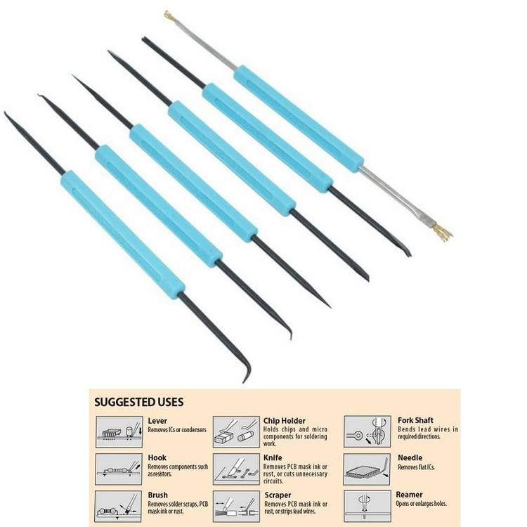 ابزار لحیم کاری طرح ژاپن دارای 6 عدد انبر در اشکال متنوع جنس فلز با دسته پلاستیکی