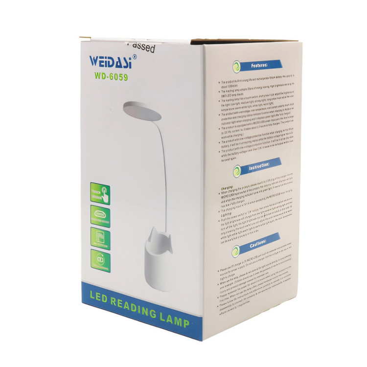 جنس بدنه:پلاستیک سخت و باکیفیت محصول ویداسی رنگ نور چراغ: سفید مهتابی نوع کلید: لمسی با پایه انعطاف پذیر و امکان چرخش 360 درجه دارای کابل USB