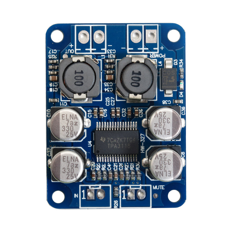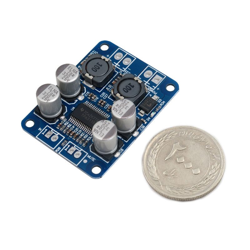 ماژول صوتی مونو TPA3118 یک آمپلی فایر دیجیتال تک کاناله مونو با توان خروجی 60 وات بر پایه چیپ TP3118می باشد. خروجی صدای این ماژول از کیفیت خیلی خوبی برخوردار است و می توان اسپیکرهایی با امپدانس 4 تا 8 اهم (بهترین کیفیت با 8 اهم) به آن متصل نمود. در ساخت این ماژول از قطعات با کیفیت عالی استفاده شده است.