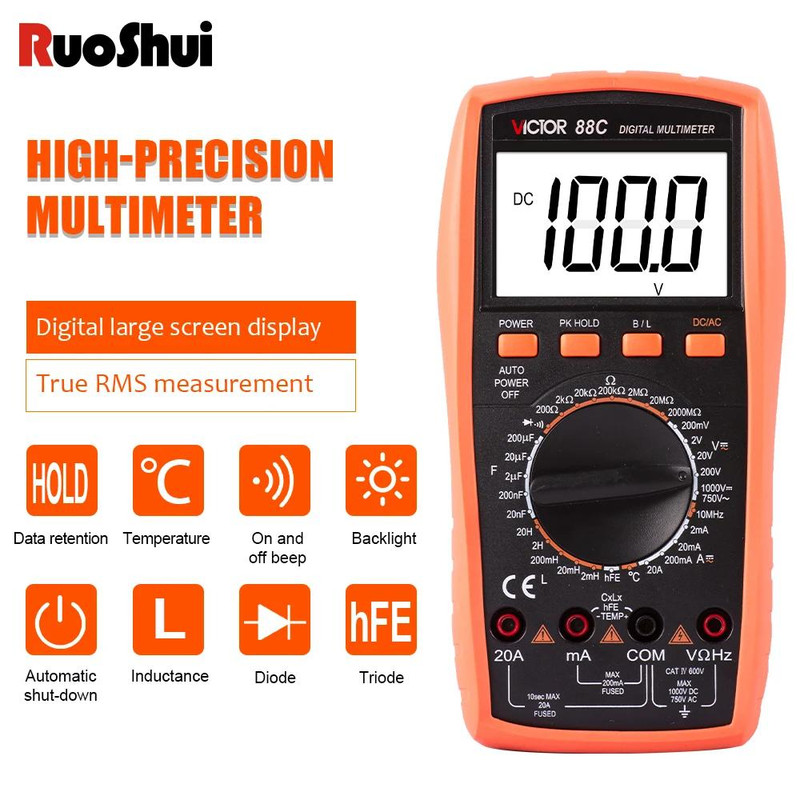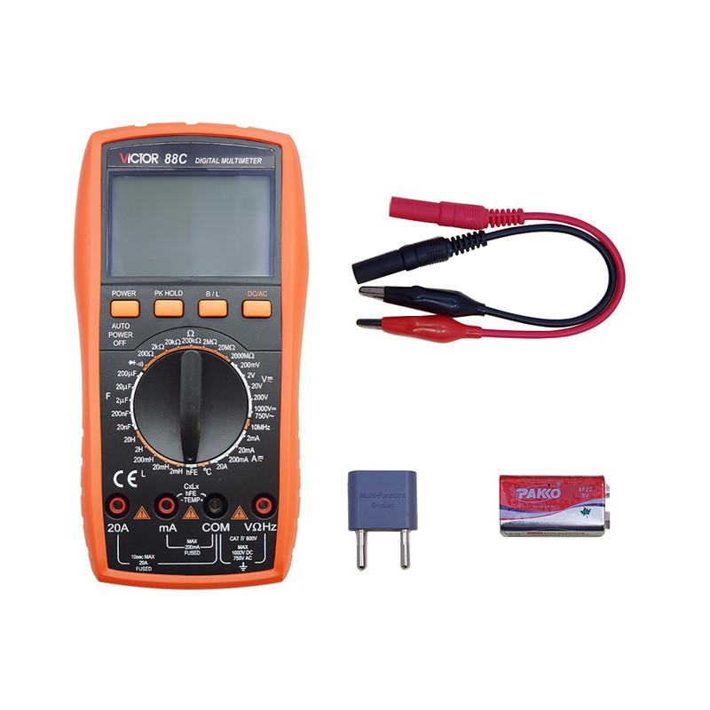 دستگاه VC88C نه تنها که یک مولتی متر دقیق است ، یک LC متر دقیق نیز می باشد، لذا بهترین گزینه برای دانشجویان و محققانی است که با هزینهی کم آرزوی یک ولتمتر ، آمپرمتر ، اهم تر و سلف سنج و خازن سنج را داشته باشد. این دستگاه دارای نمایشگر بزرگ با توانایی خواندن با وضوح بالا را دارد و با توجه به رنج دستی در این دستگاه به مراتب دقت بیشتری نسب به دستگاه های اتورنج دارد.
